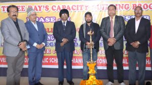 तत्पश्चात आगंतुक अतिथियों एवं प्रशिक्षुओं को संबोधित करते हुए डी.ए.वी. पब्लिक स्कूल्स झारखंड क्षेत्र आई के सहायक क्षेत्रीय अधिकारी, सह इस कार्यक्रम के क्षेत्रीय संयोजक, सह प्राचार्य एम.के.डी.ए.वी. पब्लिक स्कूल डालटेनगंज, डॉक्टर जी .एन खान ने कहा कि महान कार्य विषम परिस्थितियों में कष्ट सहकर ही किए जाते हैं । आप सभी इस कंपकंपाती ठंड में घर से दूर एक पुनीत कार्य हेतु एकत्र हुए हैं । छात्रों के समग्र विकास हेतु सी.बी.एस.ई ने 50 घंटे का प्रशिक्षण अनिवार्य किया है, जिसमें सी.बी.एस.ई एवं एन.सी.ई.आर.टी द्वारा 25 घंटा एवं इन हाउस 25 घंटा का प्रशिक्षण अनिवार्य है, जिसके दूसरे चरण में हम सभी एकत्र हुए हैं । उन्होंने प्रशिक्षुओं से इस कार्यक्रम का भरपूर लाभ उठाने एवं इसे कक्षा- कक्ष तक ले जाने का आग्रह किया । उन्होंने बताया कि यह कार्यक्रम नई शिक्षा नीति 2020 के मानक के अनुसार संपन्न होगा। यहा आवश्यक शिक्षण तकनीकी, छात्रोंपयोगी रणनीति की चर्चा पर होगी । डॉक्टर खान ने प्रशिक्षण के सैट ( सिस्टमैटिक अप्रोच आफ ट्रेनिंग ) को फ्लाईओवर के उदाहरण से समझाते हुए सभी प्रशिक्षको को आवश्यक तकनीक अपनाने की बात कही। प्राचार्य जी ने सभी प्राचार्य महोदयों से आग्रह किया कि वे अपने आधिकारधक शिक्षकों को रिसोर्स पर्सन बनने के लिए प्रोत्साहित करें। इससे छात्रों को भी लाभ होगा। उन्होंने प्रशिक्षण में प्रयुक्त पी.पी.टी के उचित प्रारूप की चर्चा की तथा बच्चों की मनोवृत्ति एवं सीखने के तरीकों पर भी चर्चा की। प्राचार्य महोदय ने खेल-खेल में शिक्षण प्रायोगिक शिक्षा पर बल देते हुए आधुनिक शिक्षण तकनीकि को अपनाने की बात कही । उन्होंने छात्रों के गिरते परिणाम स्तर को शिक्षकों की कुशलता से जोड़कर देखने की बात कही । डॉक्टर खान ने कहा कि हमारे शिक्षकों की उच्च गुणवत्ता एवं बेहतर प्रशिक्षण कार्यक्रम लोगों को विद्यालय के करीब लायेगें,ऐसा विश्वास है। डॉक्टर खान ने एक अंग्रेजी कहावत – ” एन एग ब्रोकन आउटसाइड , लाइव एन्ड्स , एन एग ब्रोकन इंसाइड लाइव बिगिंस । ” से अपनी बात समाप्त की।
